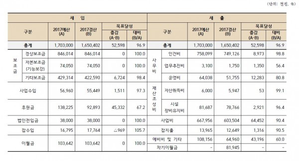 「사회복지 법인 재무·회계 규칙」제19조제2항에 따라 2017년 결산을 다음과 같이 공고합니다.
