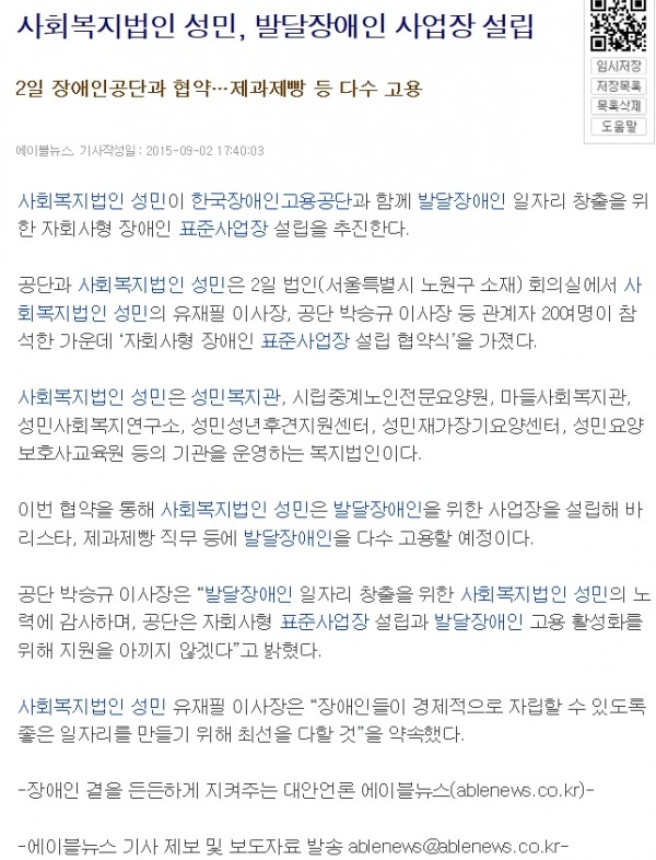 [사회복지법인성민]사회복지법인성민, 발달장애인 사업장 설립 페이지 정보 작성자 마들사회복지관 작성일15-09-11 12:21 조회5,744회 댓글0건 관련링크 이전글 다음글 목록 본문 댓글목록 등록된 댓글이 없습니다. 이전글 다음글 목록