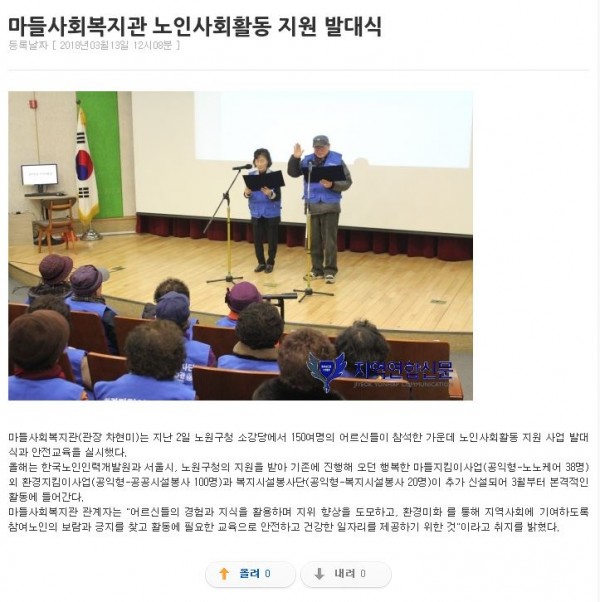 [지역연합신문] 노인사회활동지원사업 발대식 페이지 정보 작성자 최고관리자 작성일18-03-15 17:23 조회6,191회 댓글0건 관련링크 http://www.yonhap21.com/detail.php?number=13159&thread=22r07r02 3978회 연결 이전글 다음글 목록 본문 댓글목록 등록된 댓글이 없습니다. 이전글 다음글 목록
