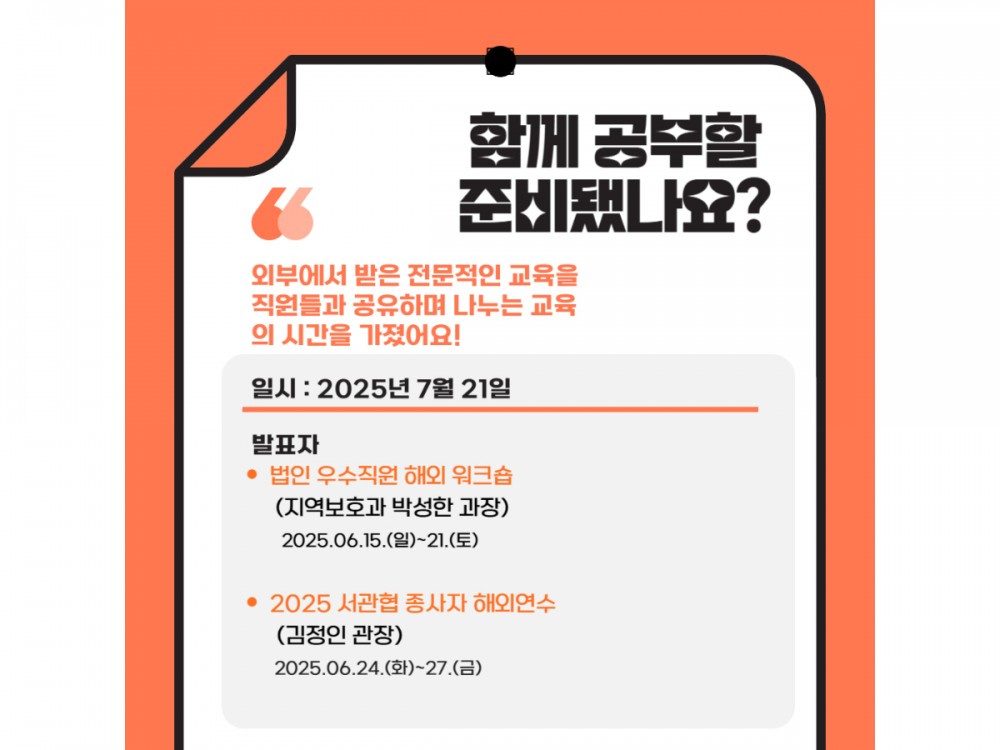 7월 전달교육 실시 페이지 정보 작성자 시설운영팀 작성일25-07-22 22:00 조회962회 댓글0건 관련링크 이전글 다음글 목록 본문 #폭염 #날씨 #태픙* 이 디자인은 미리캔버스에서 작업되었습니다.(https://www.miricanvas.com)* 글꼴 출처 : https://bit.ly/4aRZ60P 댓글목록 등록된 댓글이 없습니다. 이전글 다음글 목록