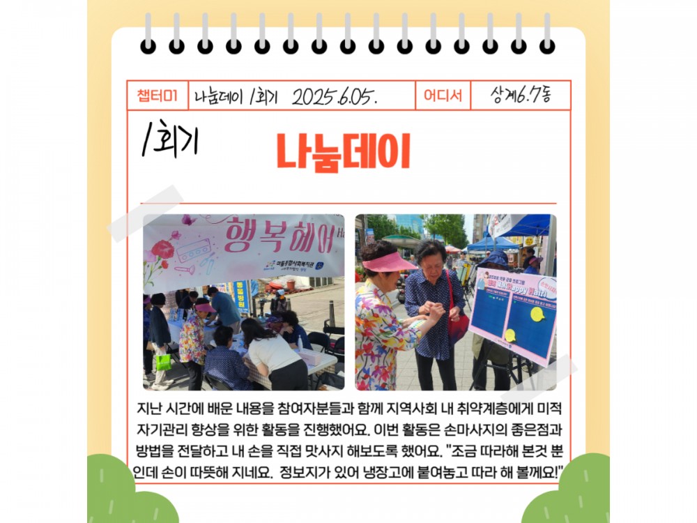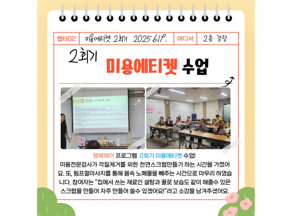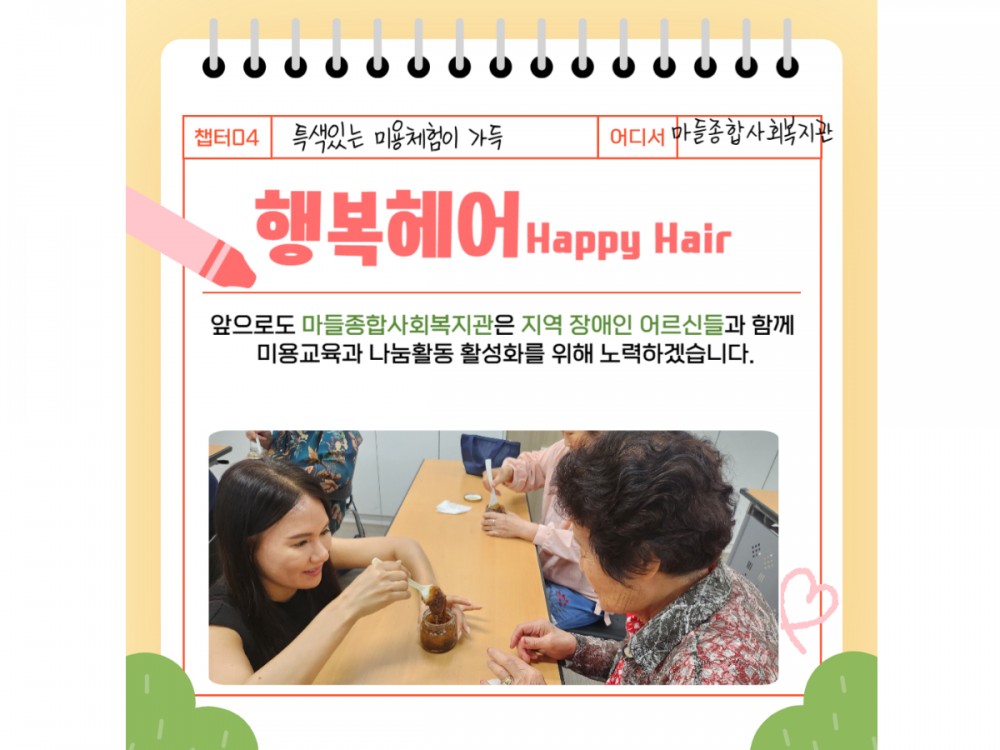 행복헤어(Happy Hair) 6월 활동 페이지 정보 작성자 시설운영팀 작성일25-06-27 21:21 조회949회 댓글0건 관련링크 이전글 다음글 목록 본문 * 이 디자인은 미리캔버스에서 작업되었습니다.(https://www.miricanvas.com)* 글꼴 출처 : https://bit.ly/4aRZ60P 댓글목록 등록된 댓글이 없습니다. 이전글 다음글 목록