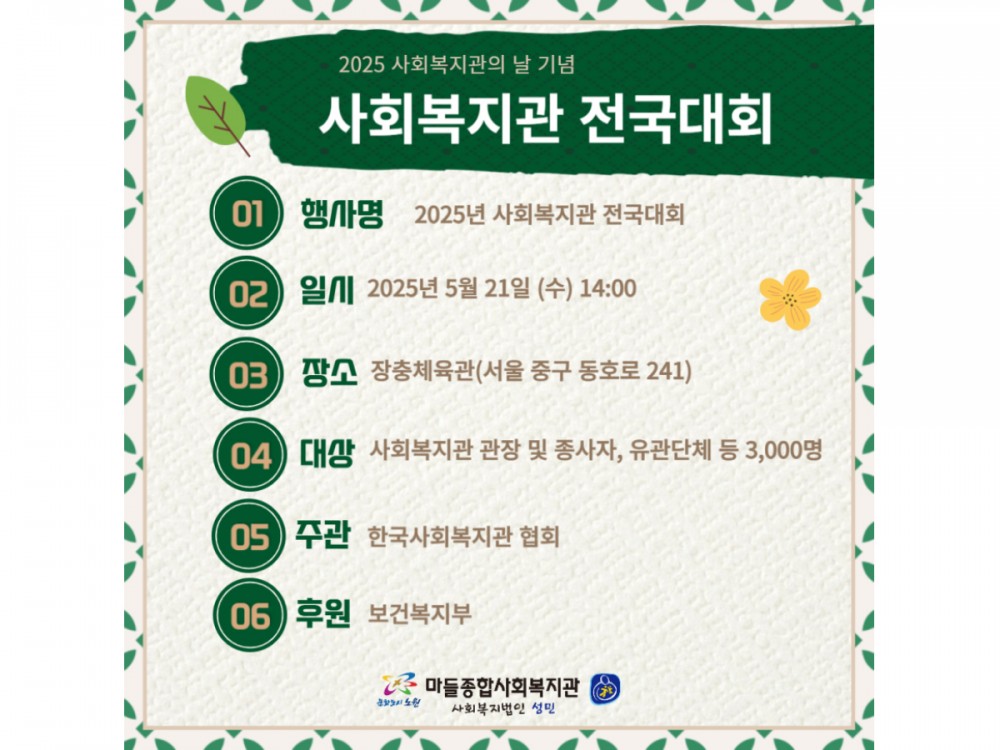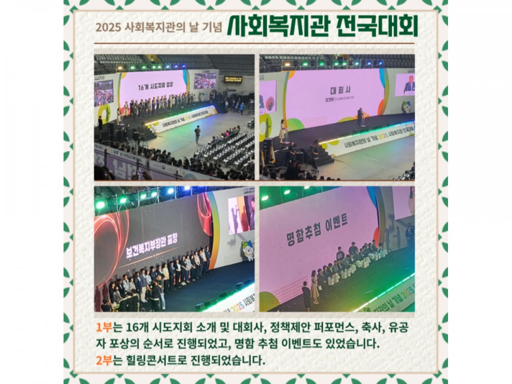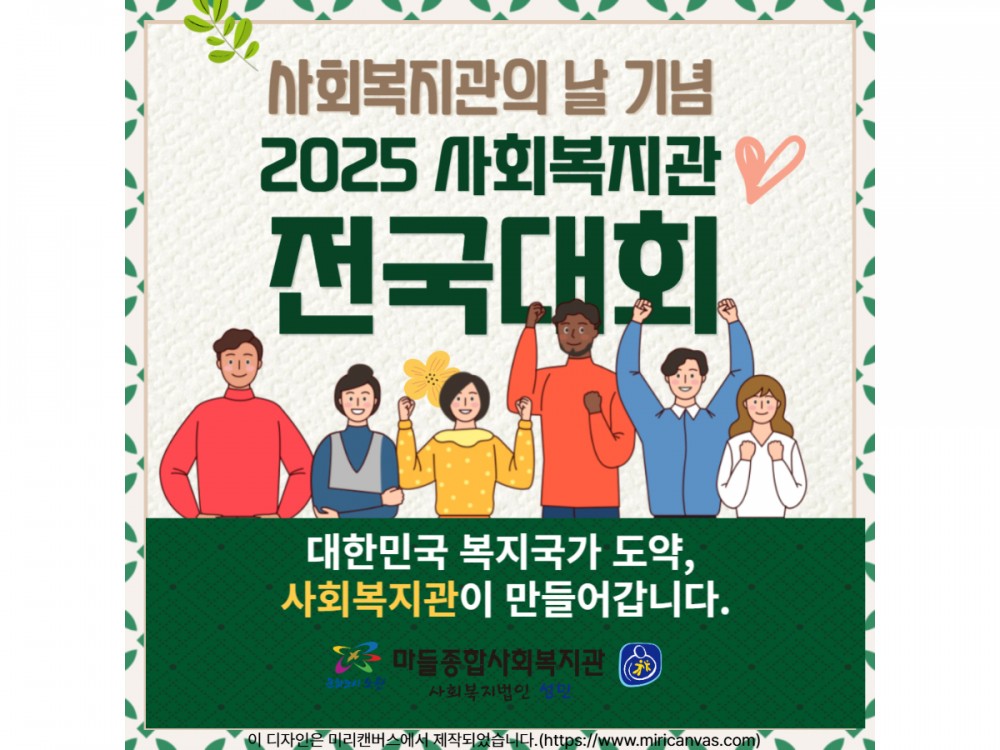 사회복지관의 날 기념 2025년 사회복지관 전국대회 페이지 정보 작성자 시설운영팀 작성일25-05-21 19:47 조회1,157회 댓글0건 관련링크 이전글 다음글 목록 본문 * 이 디자인은 미리캔버스에서 작업되었습니다.(https://www.miricanvas.com)* 글꼴 출처 : https://bit.ly/4aRZ60P 댓글목록 등록된 댓글이 없습니다. 이전글 다음글 목록