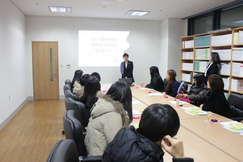 2월 24일 2017년 선발된 성민장학회 오리엔테이션에 참석하여 멘토링 꿈톡톡 사업 안내를 드리고 왔습니다.