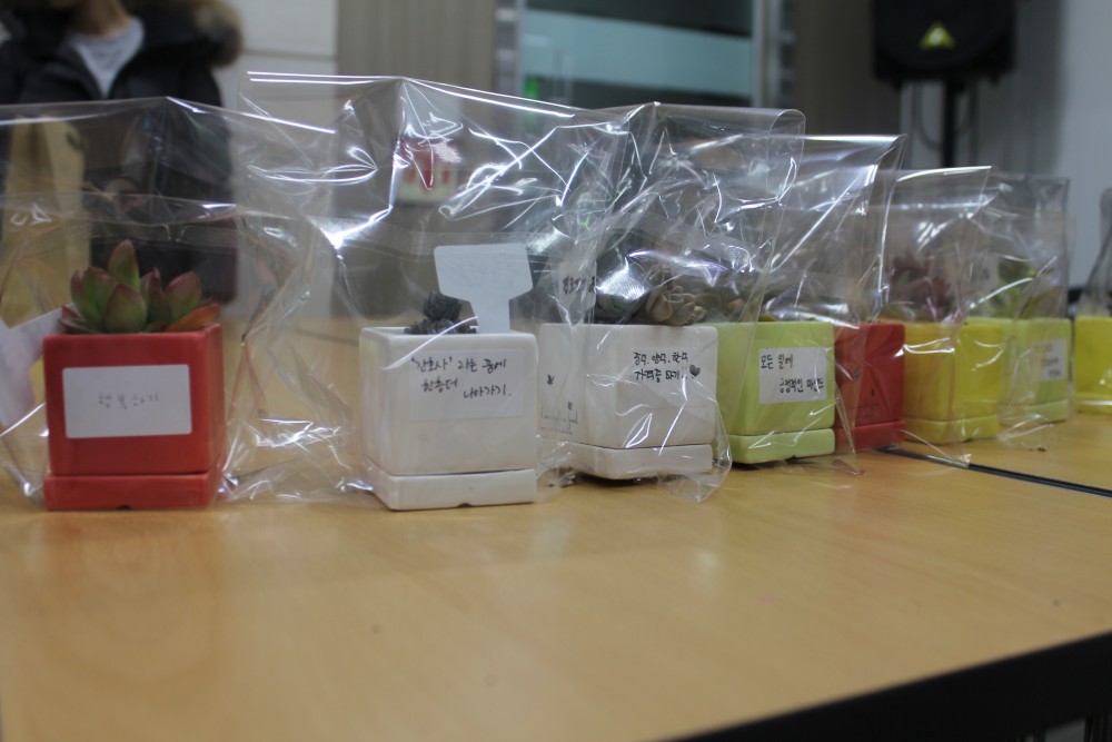 원하는 화분과 식물을 고르고 화분에는 새해 목표를 한가지씩 작성하여 같이 심는 시간을 가졌습니다.