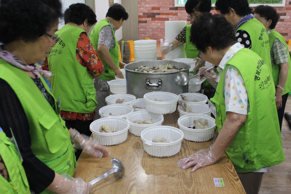 덥고 습한 날씨에 중복 특식을 준비하는데 귀한 손길을 더해주신 봉사자분들과 노인사회활동지원사업 참여자 어르신들께도 감사의 인사를 전해드립니다.