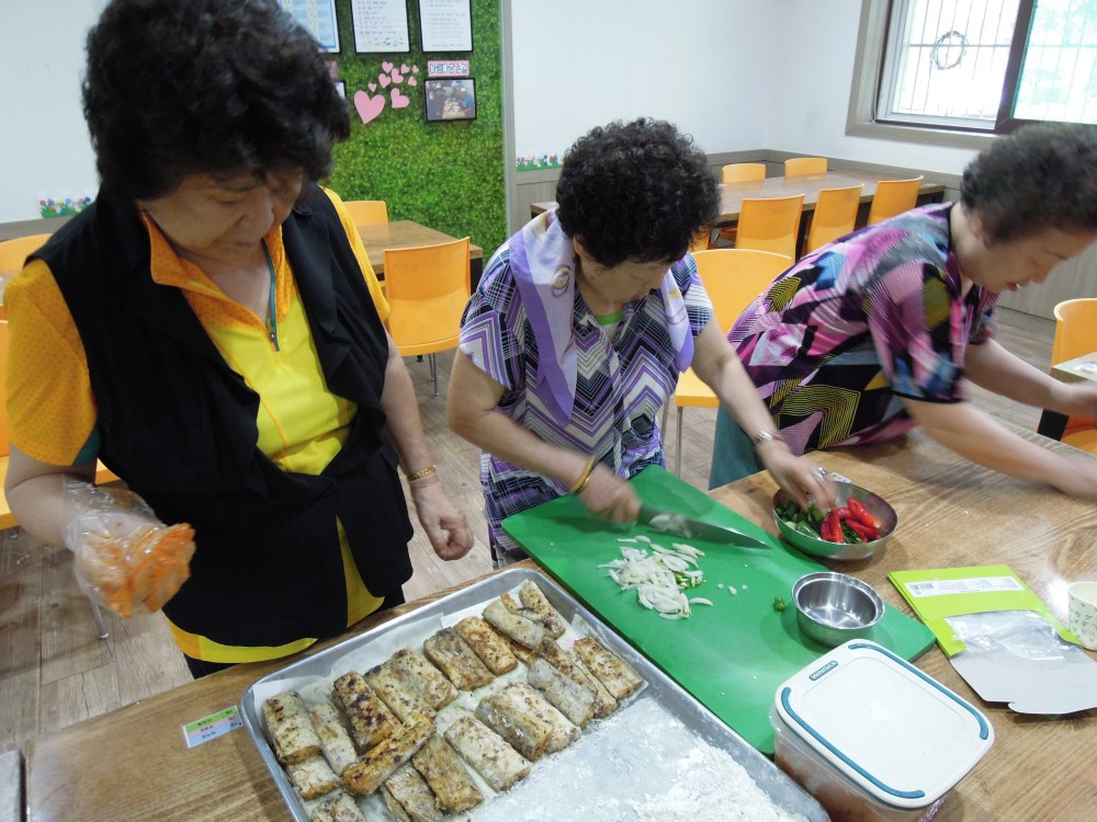 2016년 7월 21일 목요일에는 중계동 나누미(味)의 7월 돌봄활동을 진행하였습니다. 이날은 8명의 나눔이웃 주민들과 함께 갈치구이와 감자조림을 만들어 도시락용 김을 포장하여 거동이 불편한 독거어르신 및 한부모 가정 등을 8명의 돌봄이웃들에게 전달하였습니다. 언제나 그렇듯 돌봄이웃을 생각하며 정성스럽게 만든 밑반찬을 가지고 돌봄이웃들을 만날 때마다 나눔이웃과 돌봄이웃 모두 마음이 따뜻해 짐을 느낍니다.
