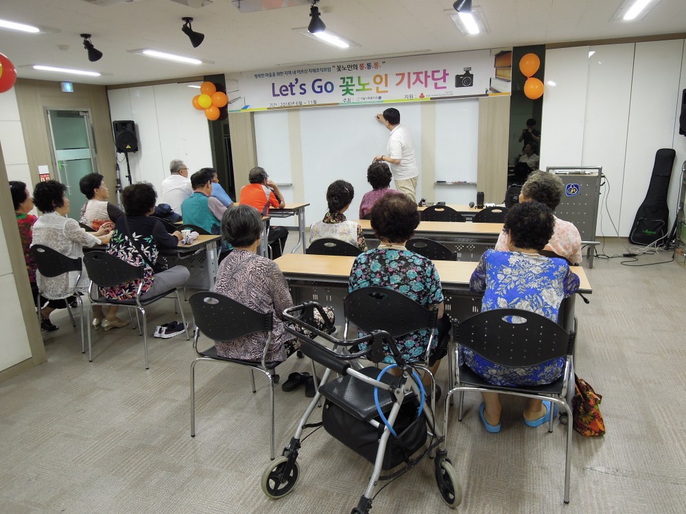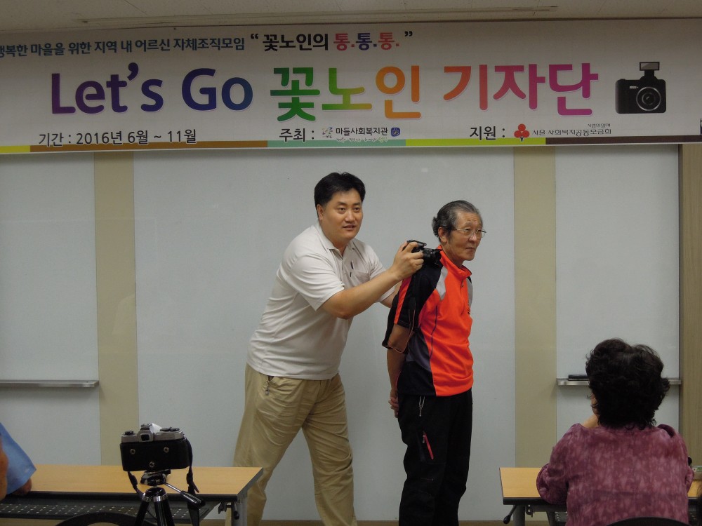 2016년 7월 29일(금) 저소득시민지원사업 ‘꽃노인의 통통통’ Let's Go 꽃노인 기자단 기초교육 2회기가 진행되었습니다. 꽃노인 기자단에서 기자로 활동하면서 필요한 사진찍는 법, 촬영구도 등에 대해 강사에게 교육을 들으며 앞으로의 활동을 다짐하는 시간이 되었습니다. 앞으로 4회기의 추가 교육을 통해 기자단으로써의 모습을 갖추어 가는 어르신들의 모습을 기대와 응원 부탁드립니다.