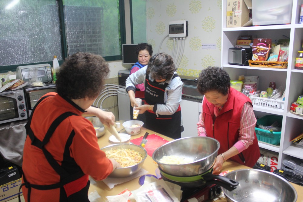 2016년 4월 21일(목) 복지관 정문에서는 ‘꽃노인의 통통통’ 4월 아침밥 나눔이 진행되었습니다. 우천인 상황에도 어르신들은 아이들이 아침밥을 먹고 힘낼 수 있도록 맛있는 요리하여 나눔활동을 진행하였습니다.
