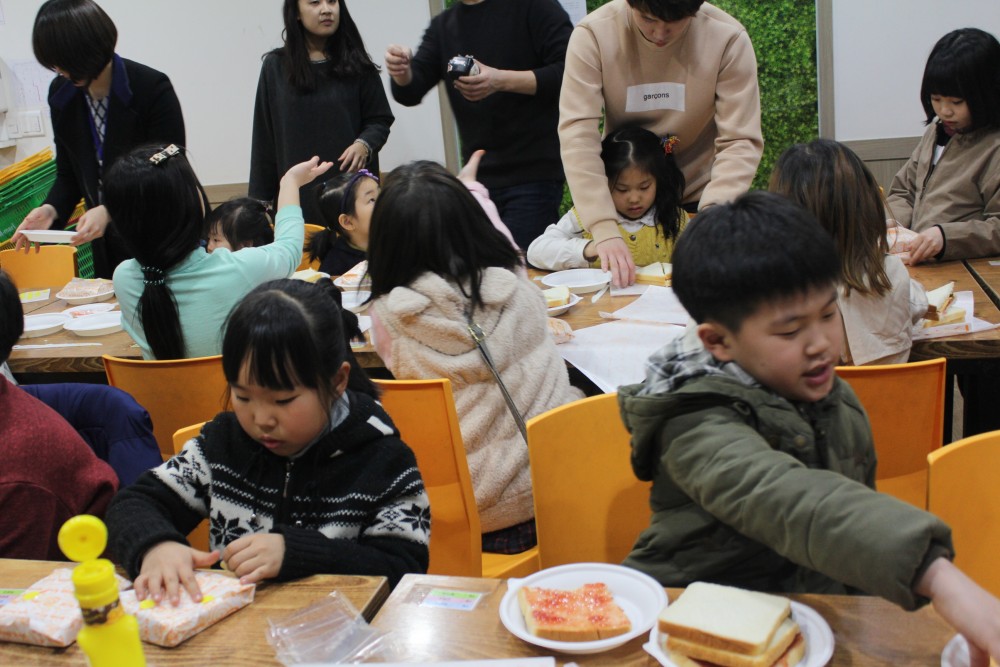 이 날 자녀들과 같이 오시는 부모님들을 위해 부모교육이 진행되는 동시에 자녀들을 위한 체험프로그램을 같이 진행하였습니다. 아이들이 오물조물 만든 샌드위치를 엄마, 아빠와 함께 맛있게 나눠먹었습니다.