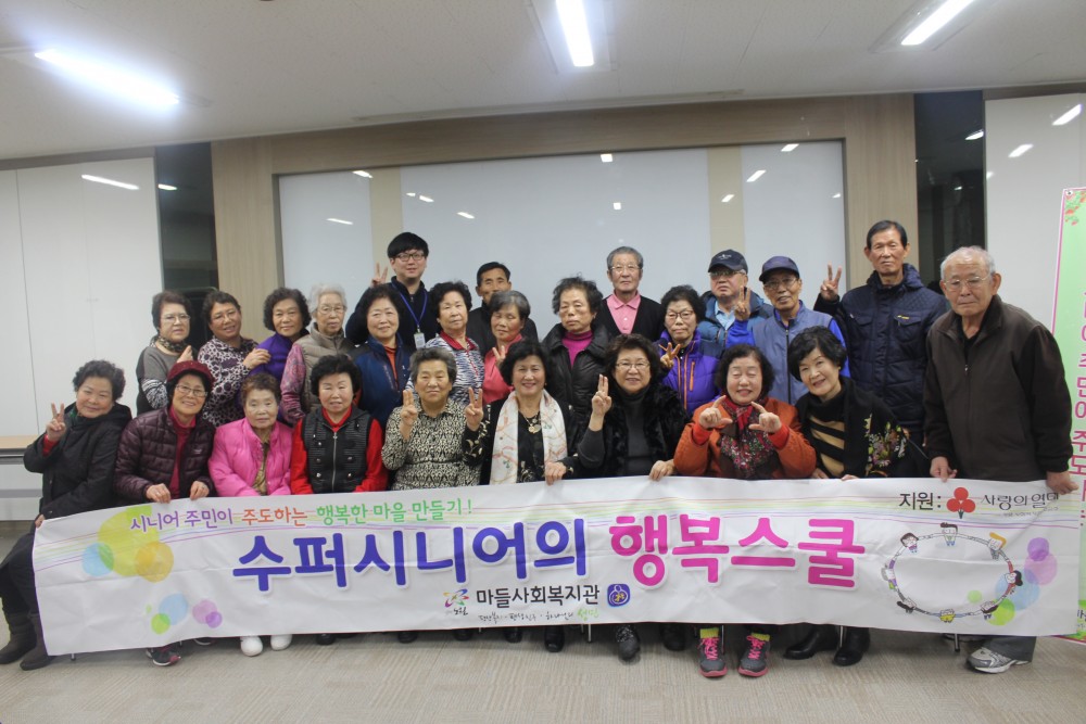 2015년 12월 3일(수) 서울사회복지공동모금회 지원사업 수퍼시니어의 행복스쿨 ‘최종평가회’가 진행되었습니다. 시니어 주민들이 2015년의 활동을 되돌아 보며 소감도 발표하고 활동에 대해 평가하는 시간이 되었습니다. 평가회 후에는 시니어 주민들이 원하여 진행하고자 했던 송년회까지 함께 진행할 수 있는 시간이 되었습니다. 최종평가회를 통해 올해를 되돌아보는 시간과 내년 활동에 대해 동기부여할 수 있는 시간이 되었습니다. 앞으로 더욱 발전하는 시니어주민의 모습들을 기대해주세요!