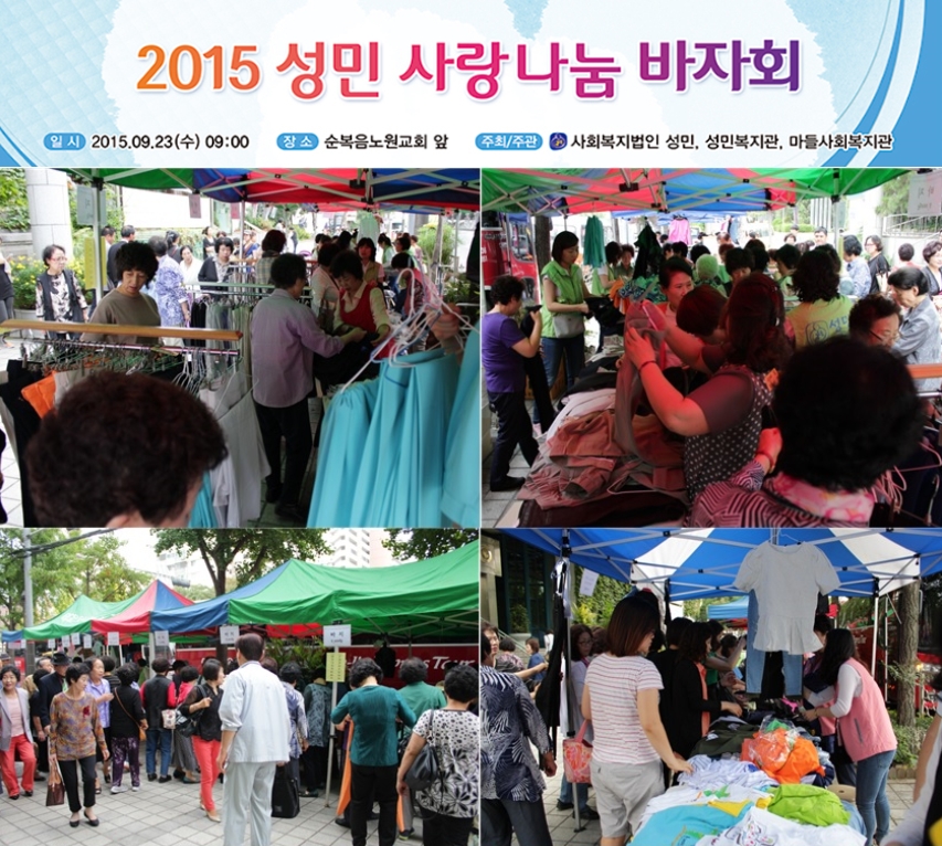 사회복지법인 성민과 산하기관 마들사회복지관, 성민복지관이 함께 모여 9월 23일(수), '성민 사랑나눔 바자회'를 진행하였습니다.