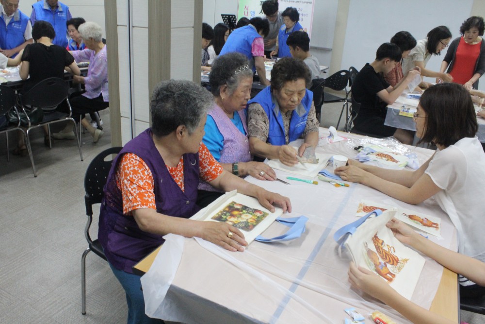 어르신들께서는 평소 친하게 지내시는 어르신들께 냅킨아트를 배워보니 더욱 재미있고,