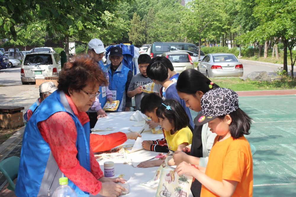 2015년 5월 13일(수) 복지관 인근 테니스장에서는 서울사회복지공동모금회 3차년도 지원사업 ‘수퍼시니어의 행복스쿨’ 문화교실(나눔)이 진행되었습니다. 5월 문화교실(얼씨구~전통문화 세대공감)은 ‘지역 내 아동과 함께하는 문화교실’이라는 주제로 수퍼시니어가 지역 내 아동들과 함께 문화교실을 진행하였습니다. 전통놀이 뿐 아니라 냅킨아트를 수퍼시니어가 가르쳐주고 아동들은 배우는 시간을 가졌습니다. ‘다음활동은 언제해요?’ 라는 아동의 질문에 수퍼시니어는 ‘너희가 원하면 할 수 있도록 준비할게’라며 서로에게 기대감을 갖는 시간이었습니다. 6월에는 한울타리와 함께하는 문화교실이 운영될 예정입니다. 많은 관심과 응원 부탁드립니다.