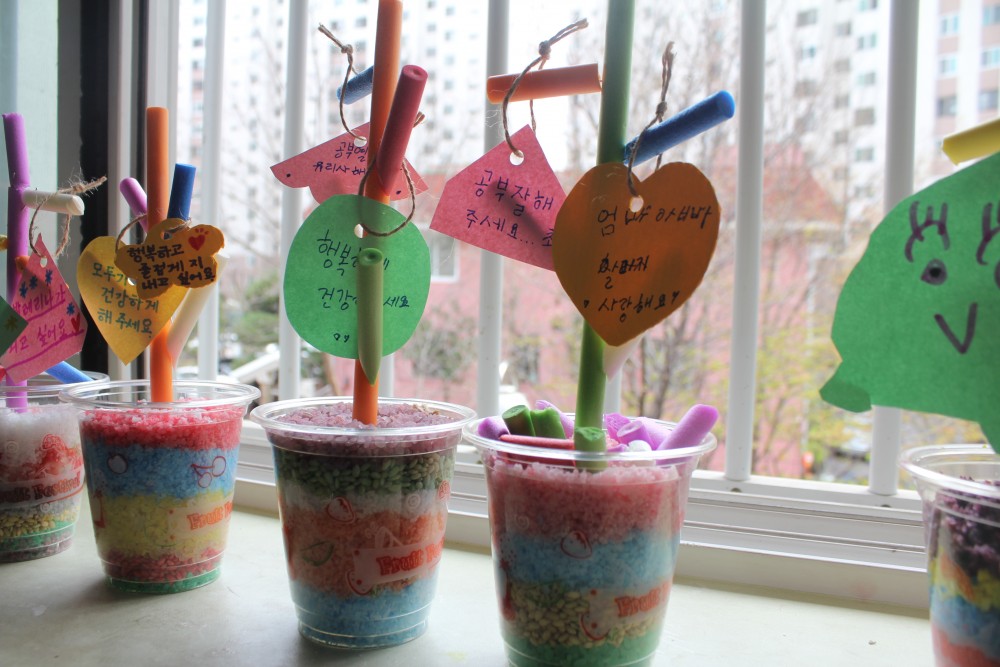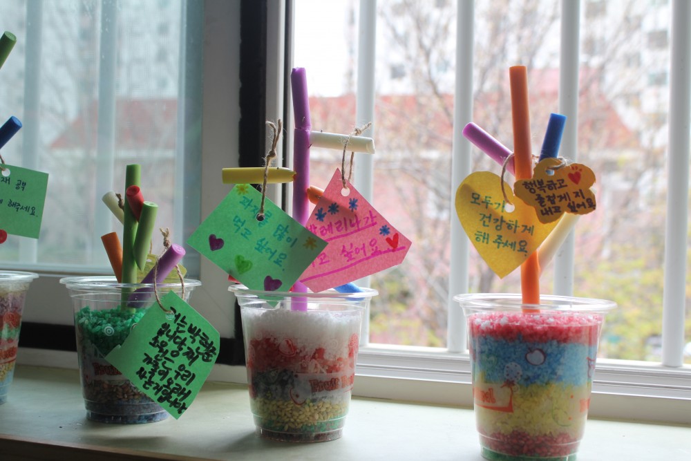 그리고 가족의 소망을 담은 메시지를 수수깡 나무에 달아보며, 아름다운 소망나무를 만들어보았습니다!