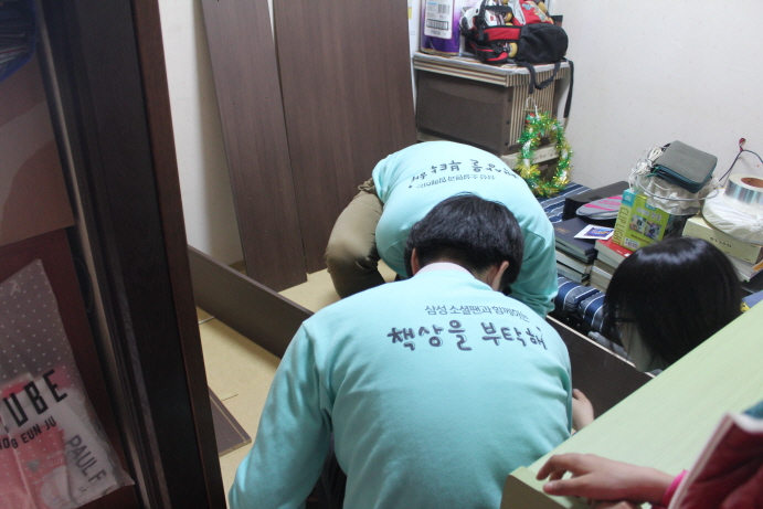 삼성그룹 봉사자들이 직접 4명의 조손가정의 아이들에게 찾아가 책상과 의자를 배달, 조립해 주었습니다.