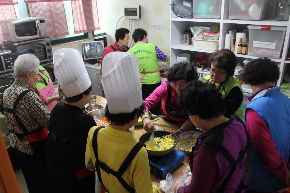 2015년 4월 23일(목) 복지관 정문에서는 서울사회복지공동모금회 지원사업 수퍼시니어의 행복스쿨 4월 나눔교실(나눔: 아침밥을 부탁해)이 진행되었습니다. 시니어 주민들이 새벽부터 나와 새우볶음밥을 만들어 등교하는 지역 내 아동·청소년들에게 나누어 주는 나눔교실을 열었습니다. 매월 4째 주 목요일 아침 매번 다른 종류의 아침밥을 만들어 학생들의 등교에 즐거움도 주고 건강도 챙기는 시니어 주민들의 모습을 볼 수 있습니다. 나눔 문화를 통해 지역내에서 시니어 주민들이 웃어른으로서의 역할을 수행하고 나눔문화가 확산될 수 있도록 많은 관심과 응원 부탁드립니다!