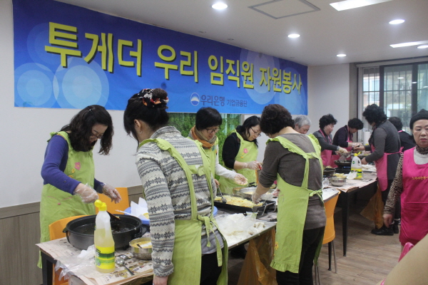 비오는 날씨에도 불구하고 함께 해주신 우리은행 기업금융단, 용화여고 샤프론 봉사단,