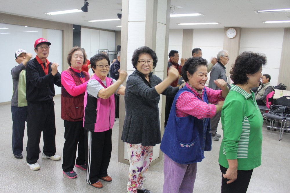 2014년 10월 21일 화요일 마들사회복지관 2층 강당에서는 서울사회복지공동모금회 2차년도 지원사업 ‘꽃노인의 문화도전’ 골목문화조성단 집단 활동 5회기가 진행되었습니다. 라인댄스와 전통놀이를 통해 어르신들이 다양한 문화 활동을 배우고 진행하였습니다. 어르신들은 “라인댄스 통해 운동도 하고 새로운 것을 배울 수 있어서 좋다.”,며 즐거워하셨습니다. 앞으로도 계획되는 어르신들의 즐거운 골목문화조성단 집단 활동을 기대해 주세요!