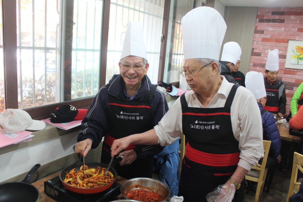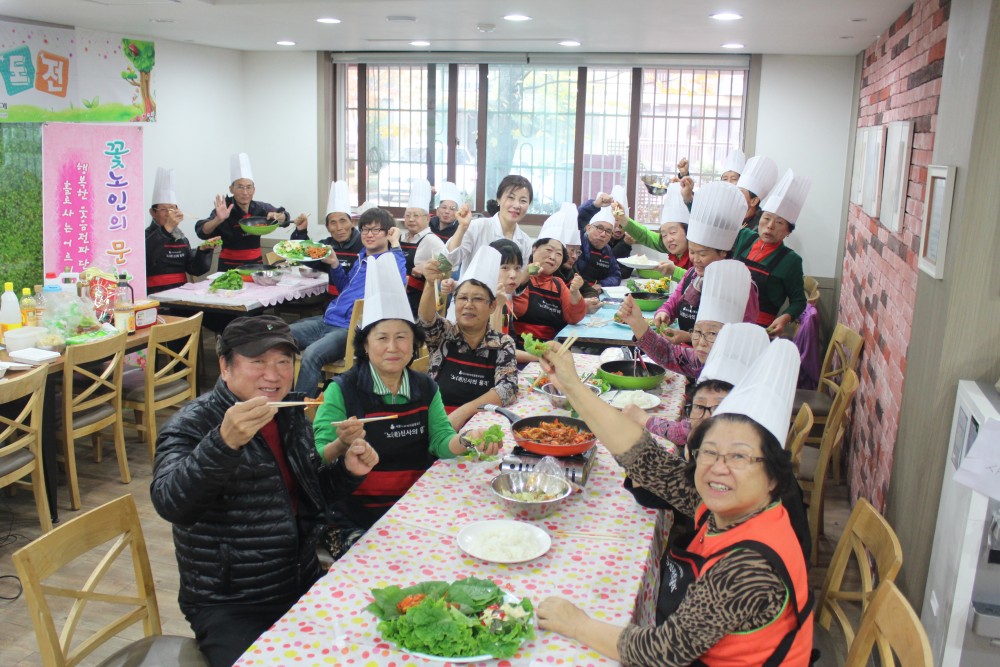 2014년 11월 12일 수요일 복지관 1층 미소레스토랑에서는 서울사회복지공동모금회 2차년도 지원사업 ‘꽃노인의 문화도전’ 꽃노인 도시락(배우Go) 9회기가 진행되었습니다.