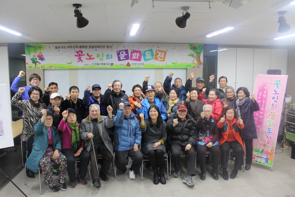 2015년 꽃노인의 문화도전은 수퍼시니어의 행복스쿨을 통해 조금 더 지역주민과 함께 할 수 있는 프로그램으로 돌아옵니다! 많은 기대와 관심 부탁드립니다!