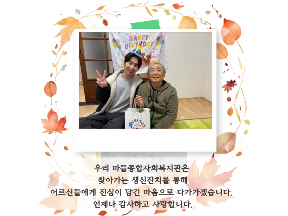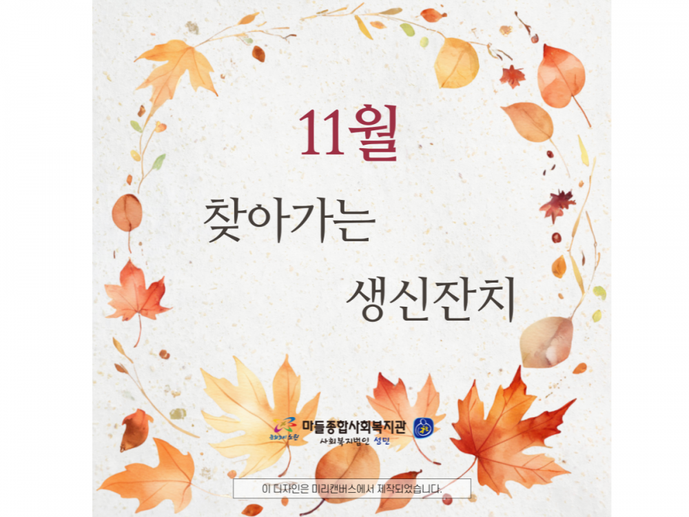 11월 '찾아가는 생신잔치' 페이지 정보 작성자 서비스1팀 작성일24-11-20 18:08 조회1,648회 댓글0건 관련링크 이전글 다음글 목록 본문 #첫눈 #크리스마스* 이 디자인은 미리캔버스에서 작업되었습니다.(https://www.miricanvas.com)* 글꼴 출처 : https://bit.ly/4aRZ60P 댓글목록 등록된 댓글이 없습니다. 이전글 다음글 목록