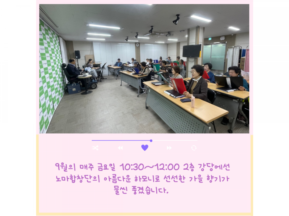 노마합창단 9월 활동내용 페이지 정보 작성자 서비스1팀 작성일24-10-07 15:04 조회1,783회 댓글0건 관련링크 이전글 다음글 목록 본문 #추석 #단풍 #송편* 이 디자인은 미리캔버스에서 작업되었습니다.(https://www.miricanvas.com)* 글꼴 출처 : https://bit.ly/4aRZ60P 댓글목록 등록된 댓글이 없습니다. 이전글 다음글 목록