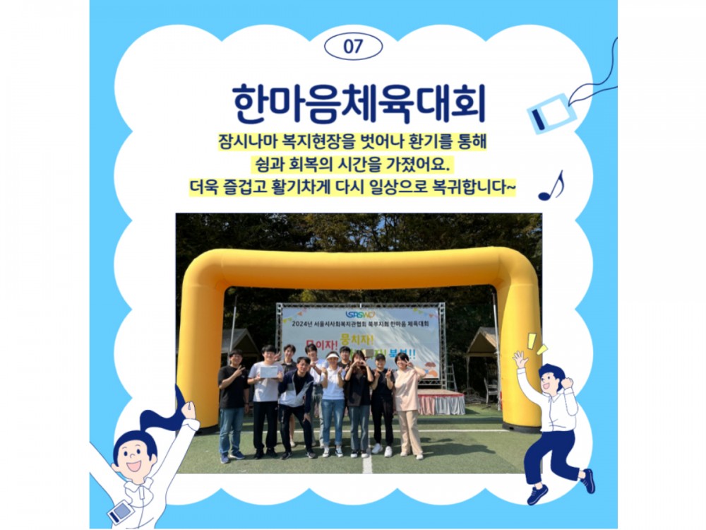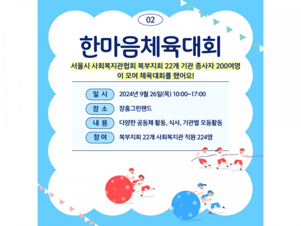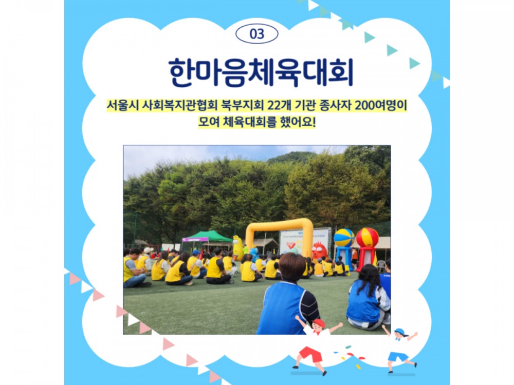 2024년 서울시사회복지관협회 북부지회 한마음체육대회 페이지 정보 작성자 경영지원팀 작성일24-09-27 11:55 조회2,240회 댓글0건 관련링크 이전글 다음글 목록 본문 * 이 디자인은 미리캔버스에서 작업되었습니다.(https://www.miricanvas.com)* 글꼴 출처 : https://bit.ly/4aRZ60P#9월 #추석 #마스크 댓글목록 등록된 댓글이 없습니다. 이전글 다음글 목록