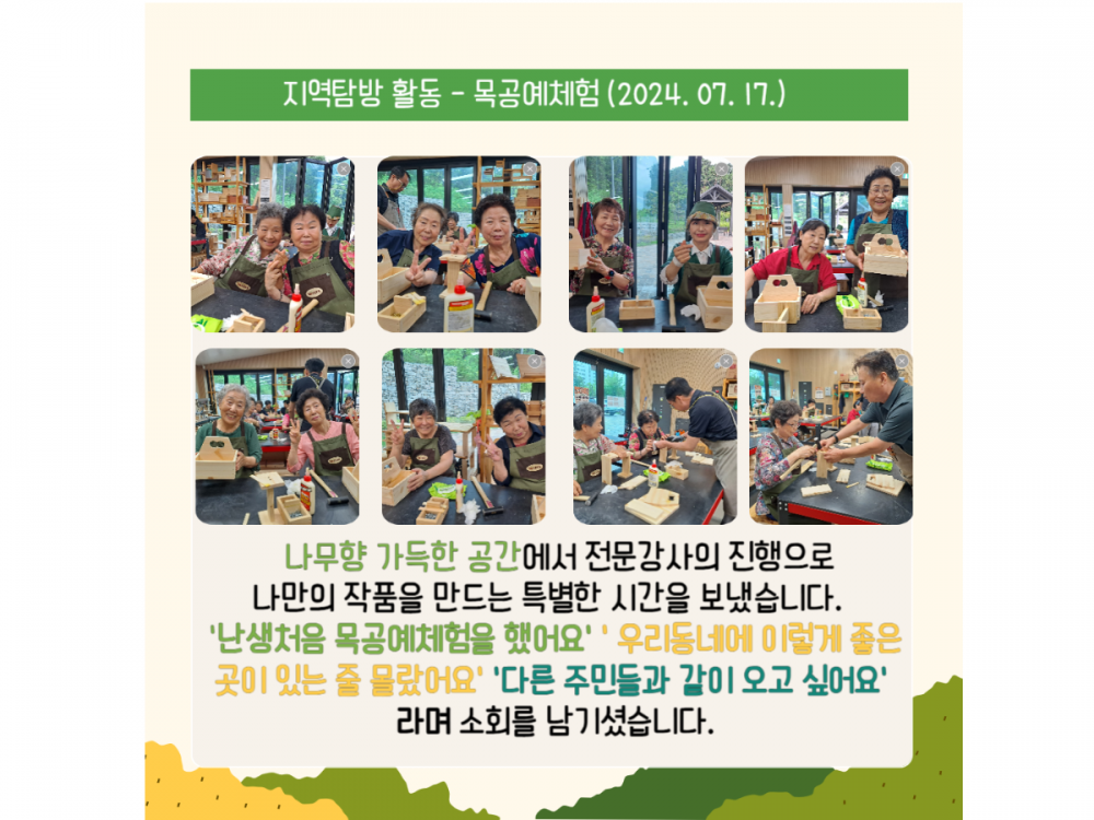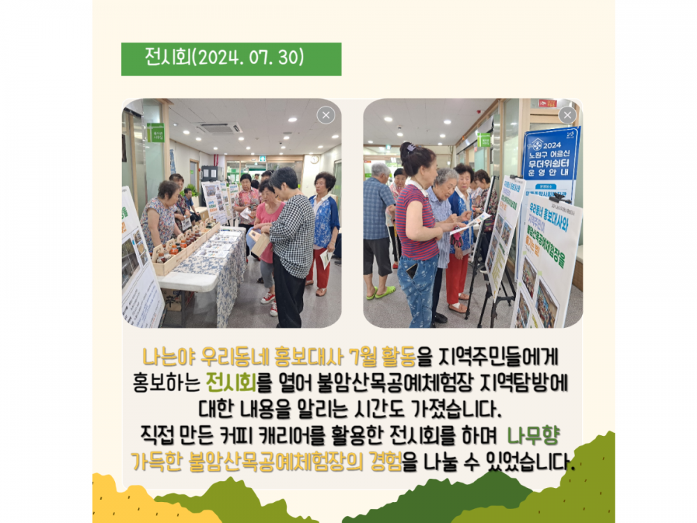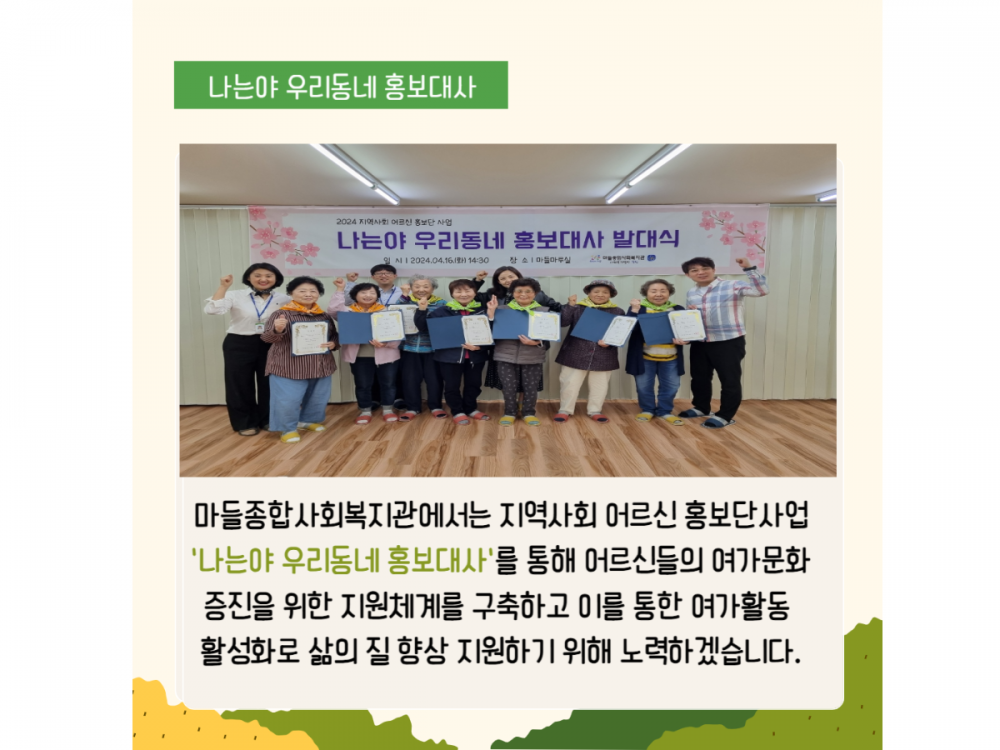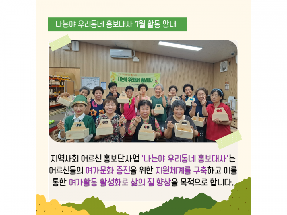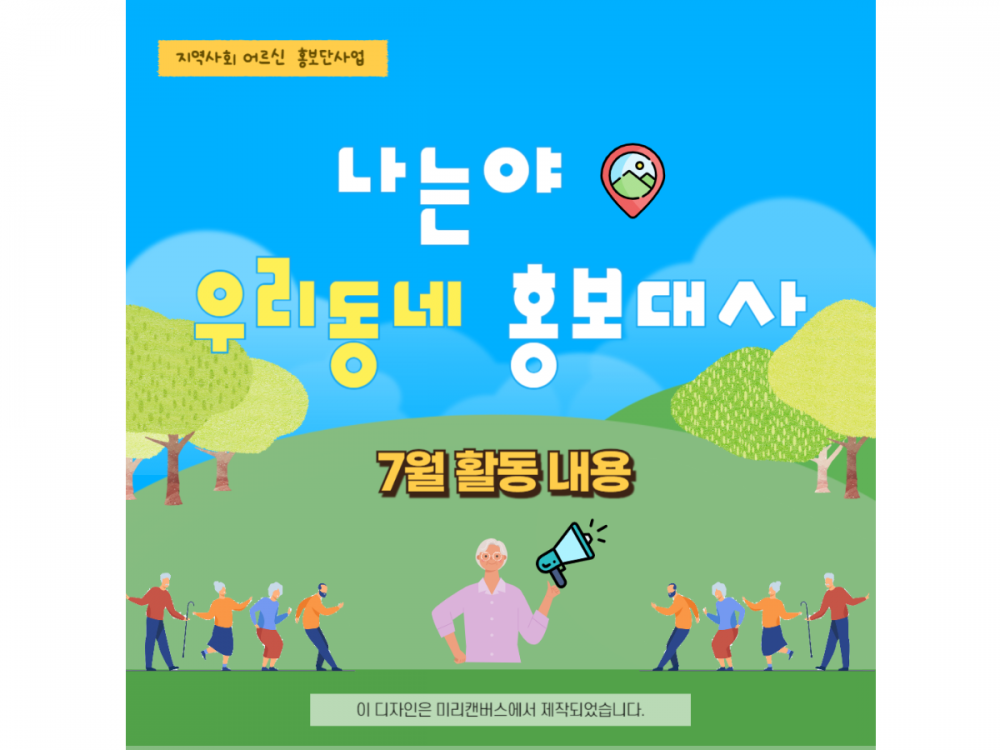 7월 지역사회어르신 홍보단사업 활동내용 페이지 정보 작성자 서비스1팀 작성일24-07-30 23:15 조회1,867회 댓글0건 관련링크 이전글 다음글 목록 본문 * 이 디자인은 미리캔버스에서 작업되었습니다.(https://www.miricanvas.com)글꼴 출처 : https://bit.ly/4aRZ60P 댓글목록 등록된 댓글이 없습니다. 이전글 다음글 목록