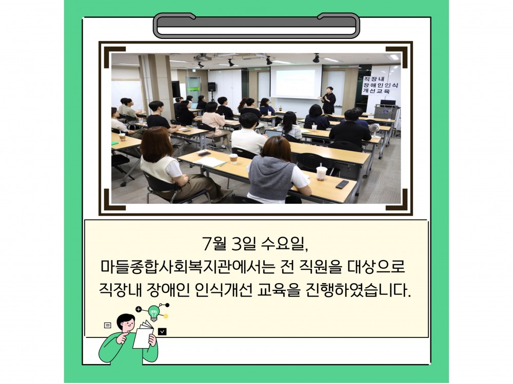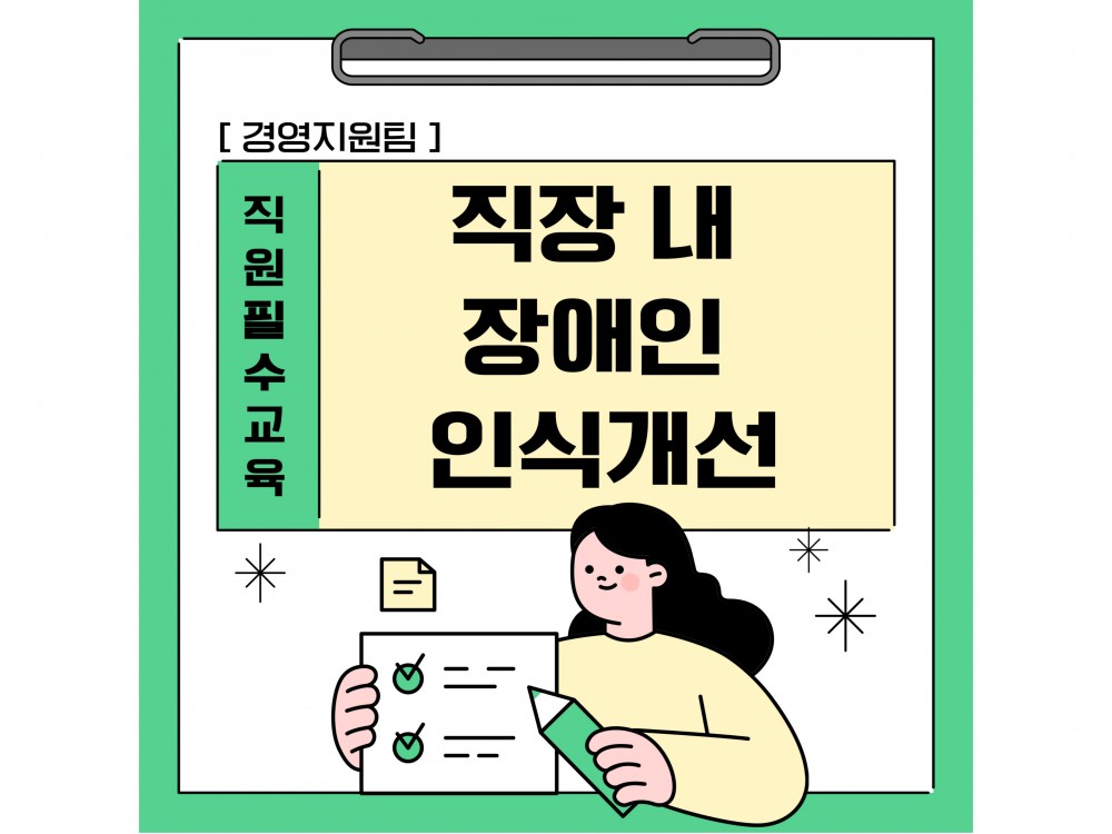 직장내 장애인 인식개선 교육 페이지 정보 작성자 경영지원팀 작성일24-07-31 23:12 조회2,086회 댓글0건 관련링크 이전글 다음글 목록 본문 #폭염 #물놀이 #수박* 이 디자인은 미리캔버스에서 작업되었습니다.(https://www.miricanvas.com)* 글꼴 출처 : https://bit.ly/4aRZ60P 댓글목록 등록된 댓글이 없습니다. 이전글 다음글 목록