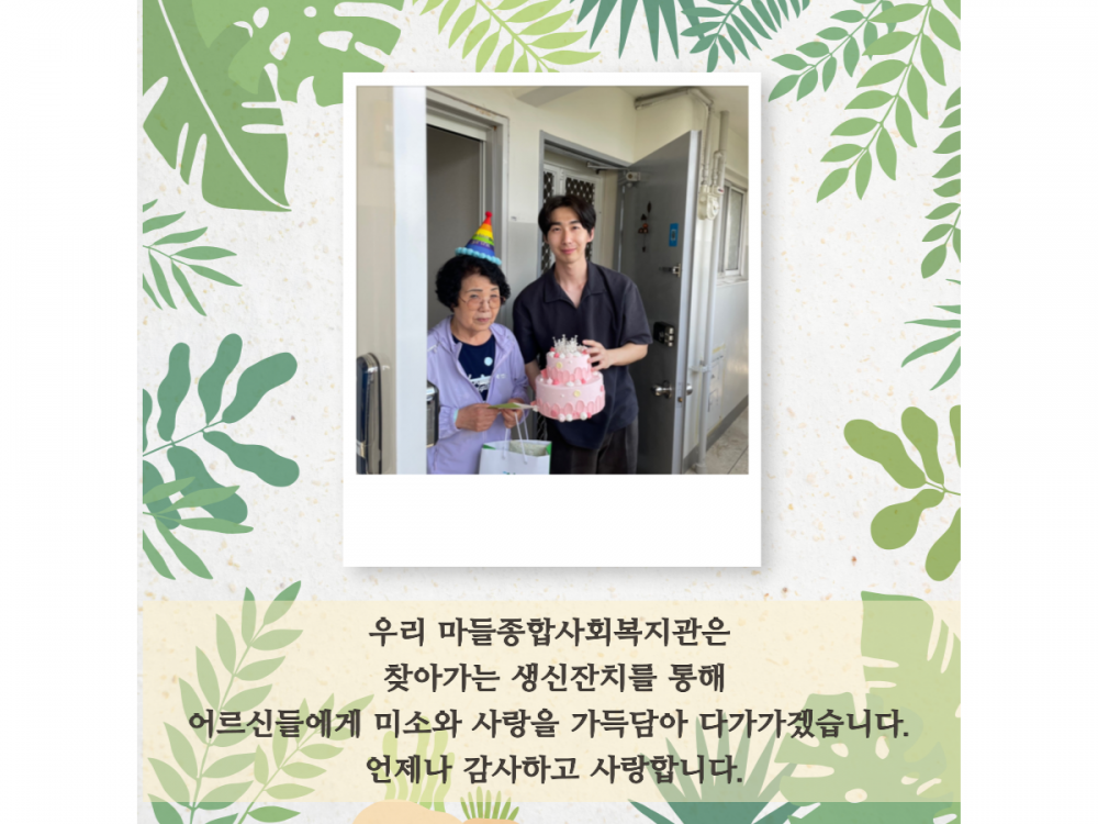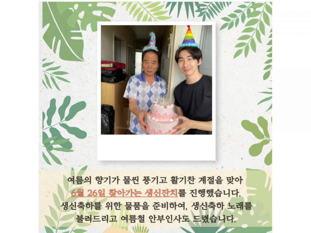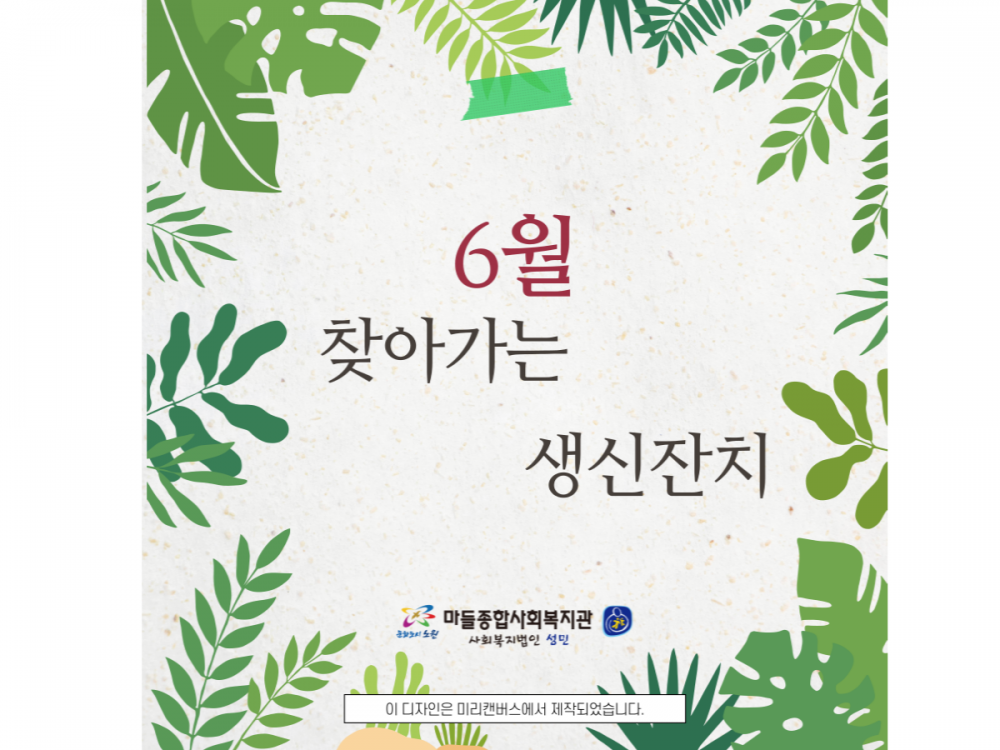 6월 '찾아가는 생신잔치' 페이지 정보 작성자 서비스1팀 작성일24-06-28 14:08 조회1,940회 댓글0건 관련링크 이전글 다음글 목록 본문 #물놀이 #폭염 * 이 디자인은 미리캔버스에서 작업되었습니다.(https://www.miricanvas.com)글꼴 출처 : https://bit.ly/4aRZ60P 댓글목록 등록된 댓글이 없습니다. 이전글 다음글 목록
