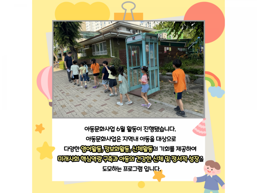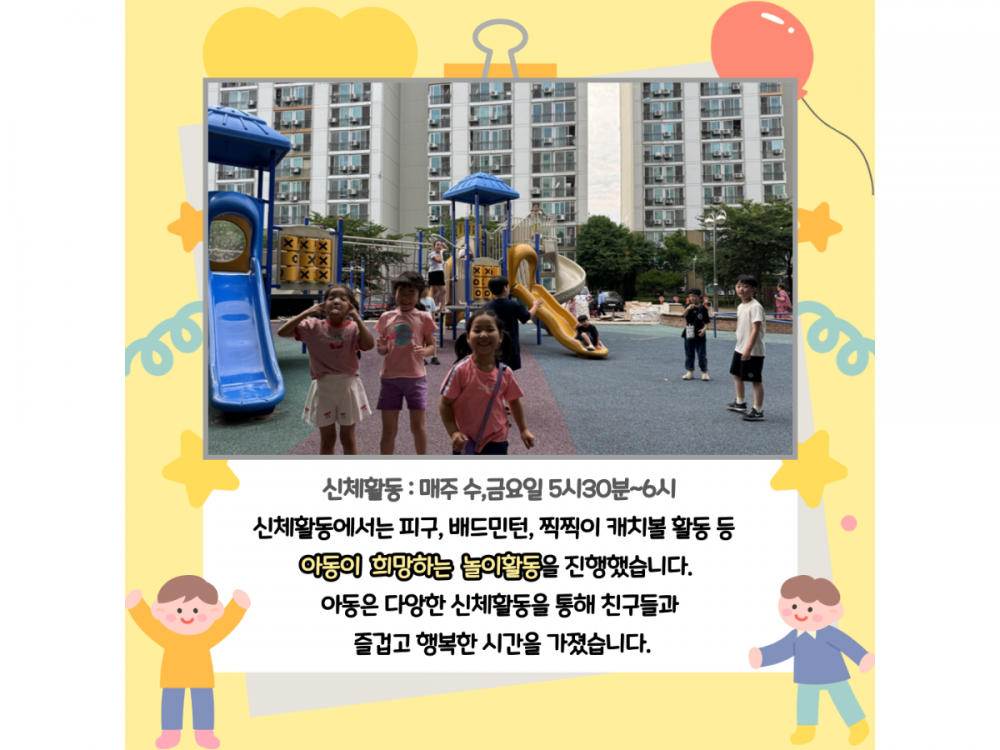 6월 아동문화사업 활동내용 페이지 정보 작성자 서비스1팀 작성일24-06-28 15:22 조회2,133회 댓글0건 관련링크 이전글 다음글 목록 본문 #물놀이, #폭염* 이 디자인은 미리캔버스에서 작업되었습니다.(https://www.miricanvas.com)* 글꼴 출처 : https://bit.ly/4aRZ60P 댓글목록 등록된 댓글이 없습니다. 이전글 다음글 목록