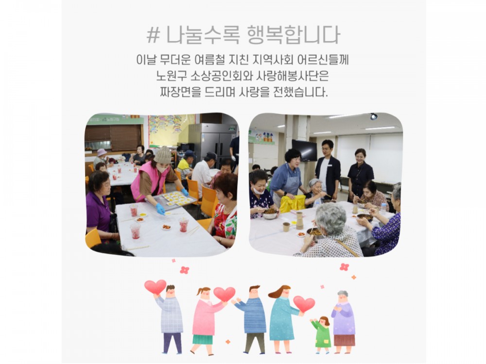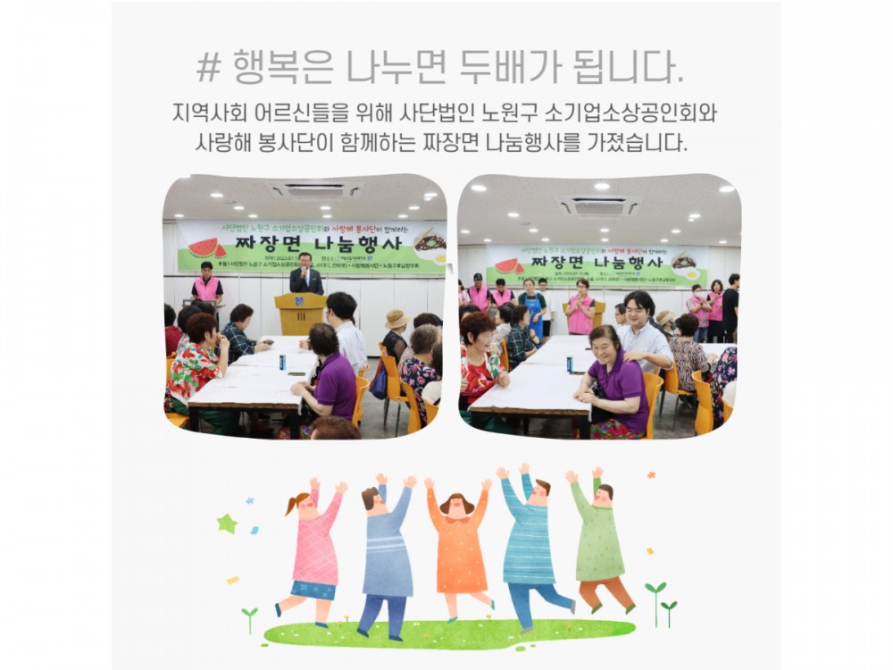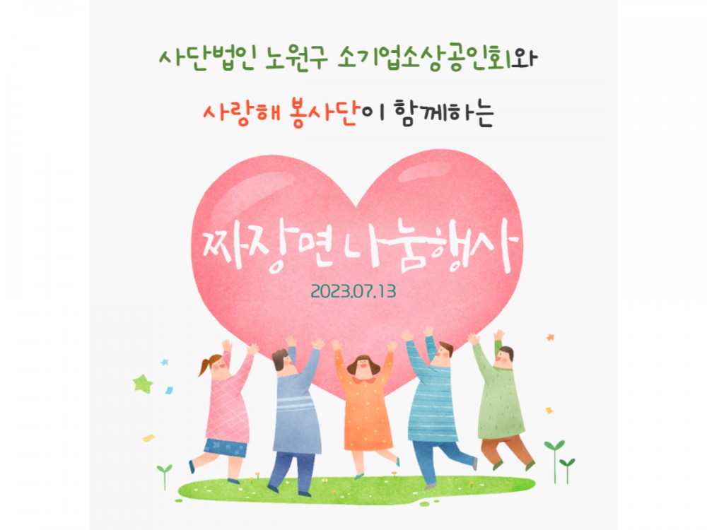 사단법인 노원구 소기업소상공인회와 사랑해 봉사단이 함께하는 "짜장면 나눔행사" 페이지 정보 작성자 서비스1팀 작성일23-08-02 14:50 조회2,412회 댓글0건 관련링크 이전글 다음글 목록 본문 짜장면 나눔행사입니다.* 이 디자인은 미리캔버스에서 작업되었습니다. (https://www.miricanvas.com)* 글꼴 출처 : https://bit.ly/4aRZ60P 댓글목록 등록된 댓글이 없습니다. 이전글 다음글 목록