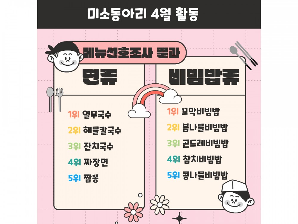 4월 미소동아리 활동 페이지 정보 작성자 서비스1팀 작성일23-07-10 09:25 조회2,348회 댓글0건 관련링크 이전글 다음글 목록 본문 4월 미소동아리 활동입니다.* 이 디자인은 미리캔버스에서 작업되었습니다.(https://www.miricanvas.com) 글꼴 출처 : https://bit.ly/4aRZ60P 댓글목록 등록된 댓글이 없습니다. 이전글 다음글 목록