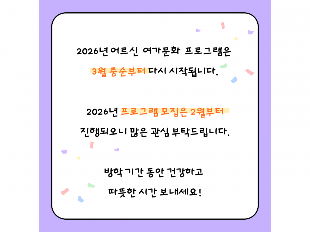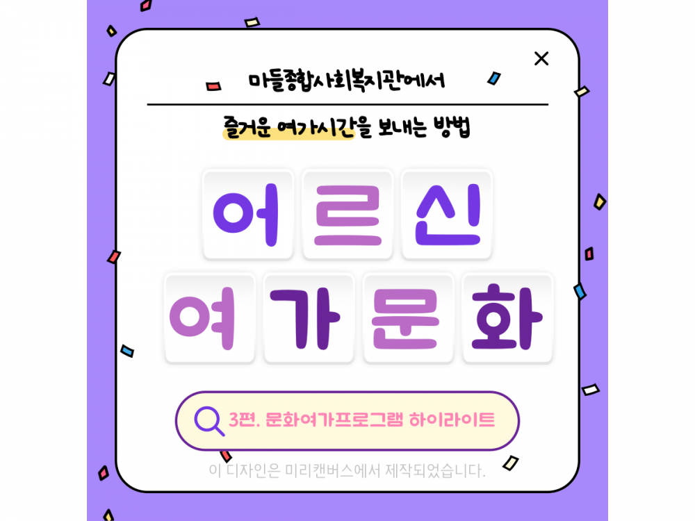 마들금빛대학 문화여가프로그램 하이라이트 페이지 정보 작성자 서비스팀 작성일25-12-23 15:36 조회318회 댓글0건 관련링크 이전글 다음글 목록 본문 #크리스마스 #붕세권 #연말* 이 디자인은 미리캔버스에서 작업되었습니다.(https://www.miricanvas.com) 댓글목록 등록된 댓글이 없습니다. 이전글 다음글 목록