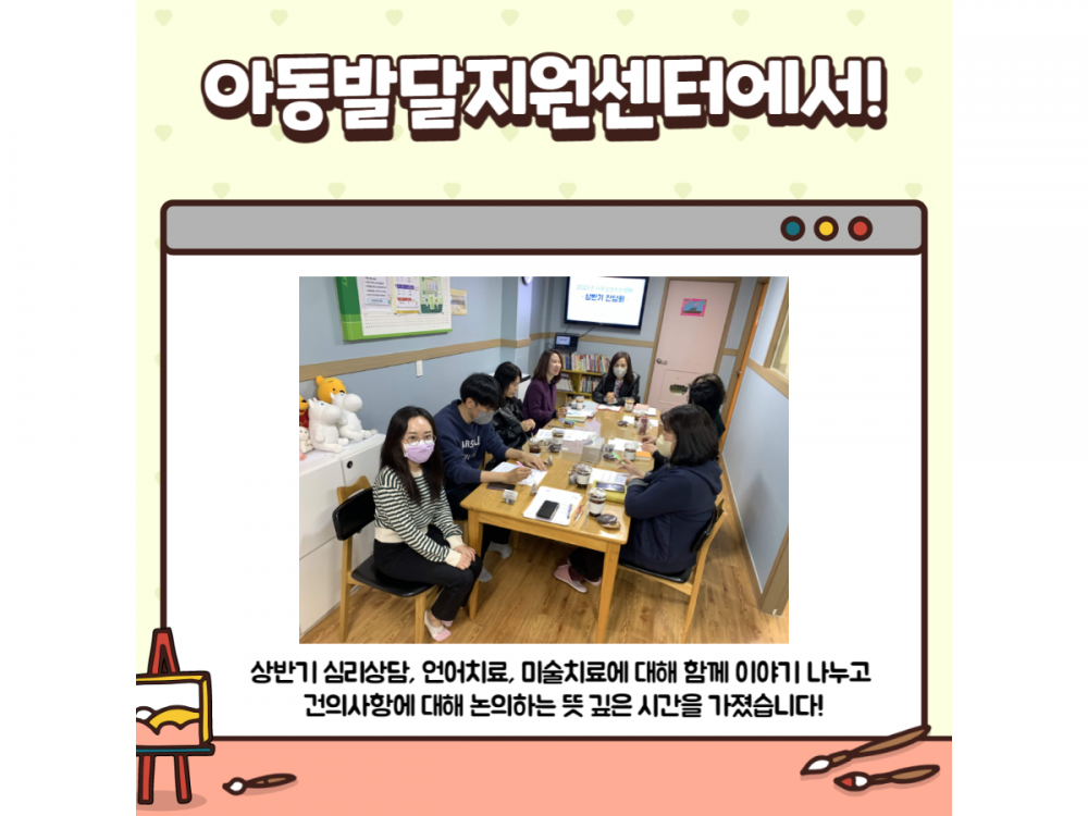 2023년 아동발달지원센터 상반기 간담회 페이지 정보 작성자 사례지원팀 작성일23-03-31 11:19 조회2,142회 댓글0건 관련링크 이전글 다음글 목록 본문 * 이 디자인은 미리캔버스에서 작업되었습니다. (https://www.miricanvas.com)* 글꼴 출처 : https://bit.ly/4aRZ60P 댓글목록 등록된 댓글이 없습니다. 이전글 다음글 목록