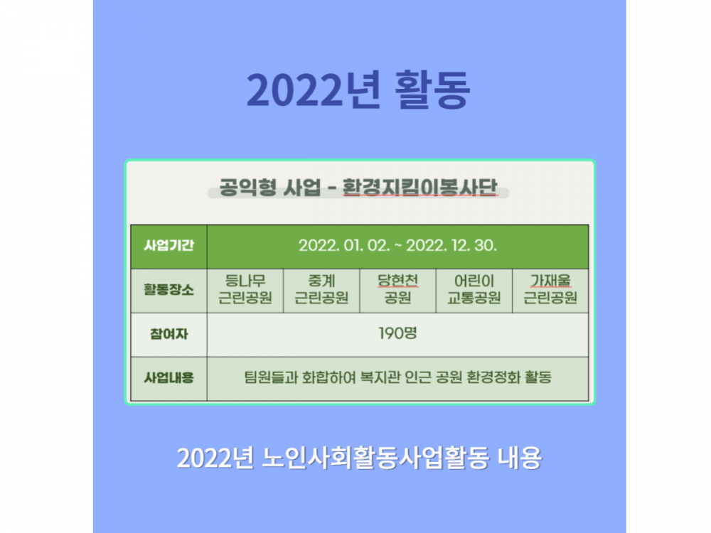 '노인사회활동지원사업 공익형' 종결평가회 페이지 정보 작성자 서비스2팀 작성일22-11-30 15:12 조회2,178회 댓글0건 관련링크 이전글 다음글 목록 본문 * 이 디자인은 미리캔버스에서 작업되었습니다. (https://www.miricanvas.com)* 글꼴 출처 : https://bit.ly/4aRZ60P 댓글목록 등록된 댓글이 없습니다. 이전글 다음글 목록