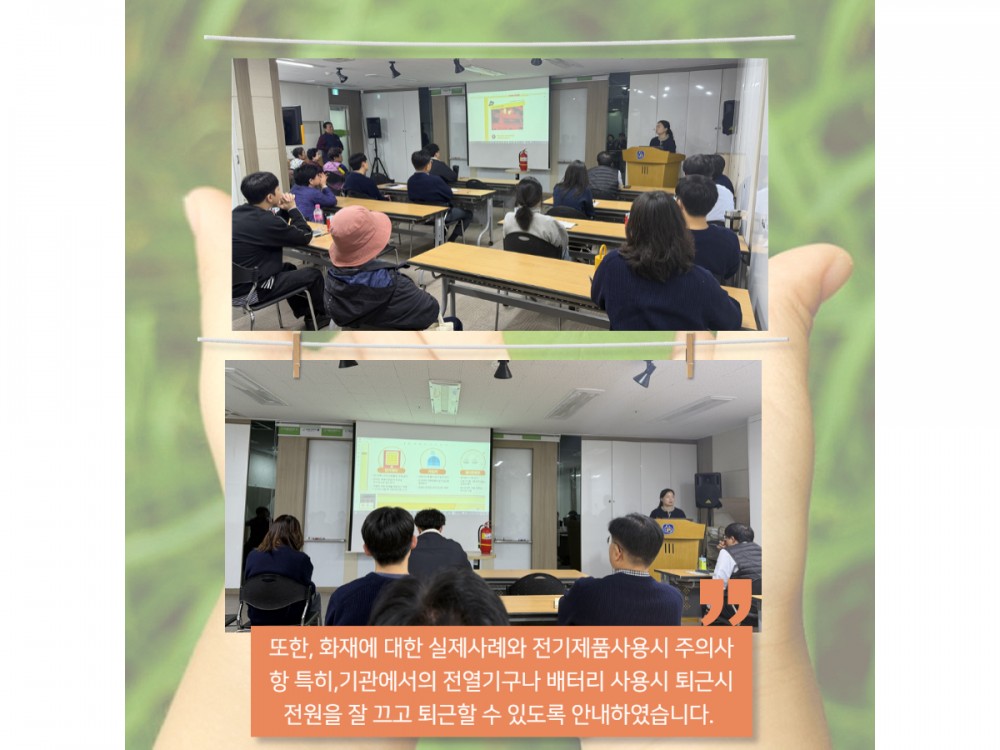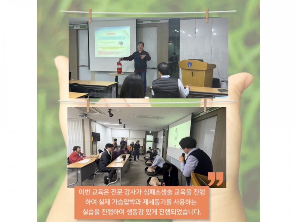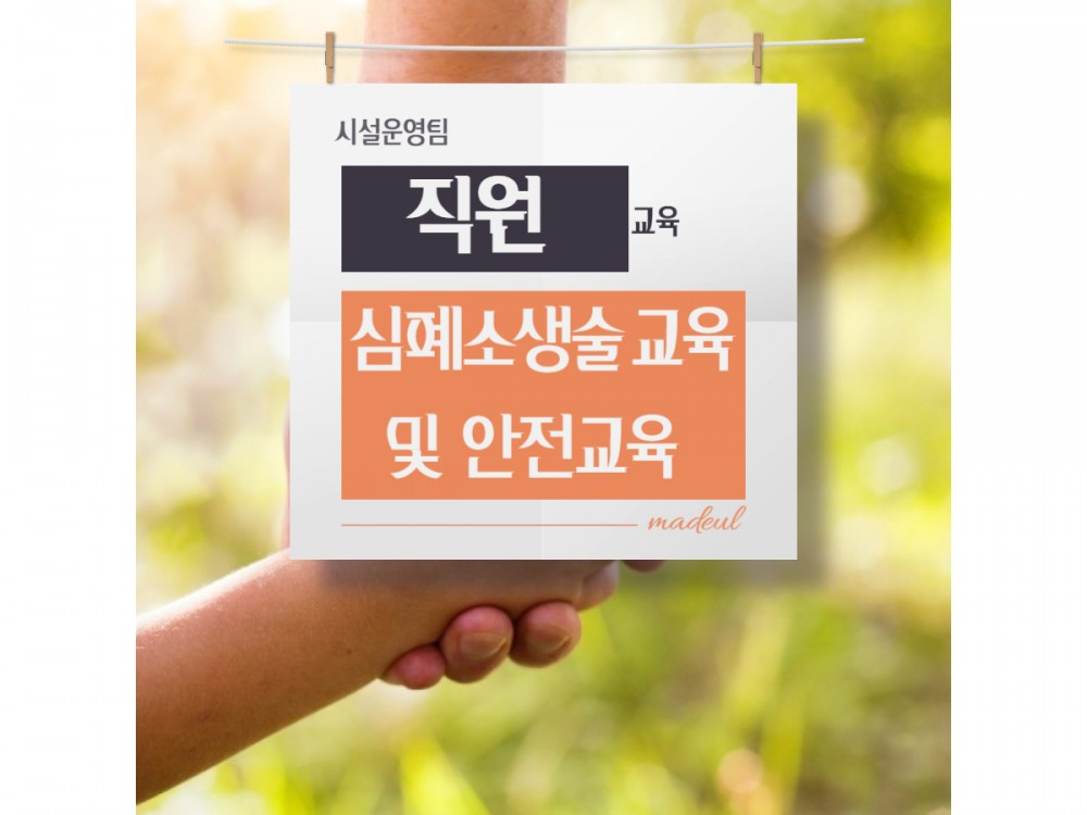 직원필수교육 (심폐소생술 및 비상대피훈련/화재예방 안전교육) 페이지 정보 작성자 시설운영팀 작성일25-10-31 13:43 조회636회 댓글0건 관련링크 이전글 다음글 목록 본문 #단풍 #추석#명절* 이 디자인은 미리캔버스에서 작업되었습니다.(https://www.miricanvas.com) 댓글목록 등록된 댓글이 없습니다. 이전글 다음글 목록