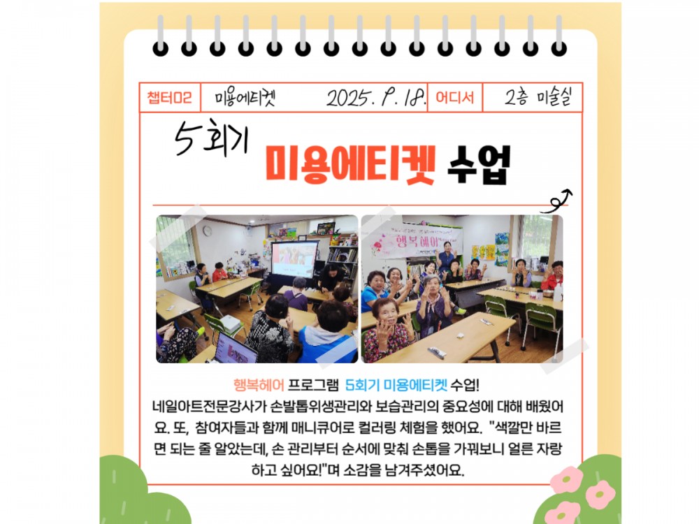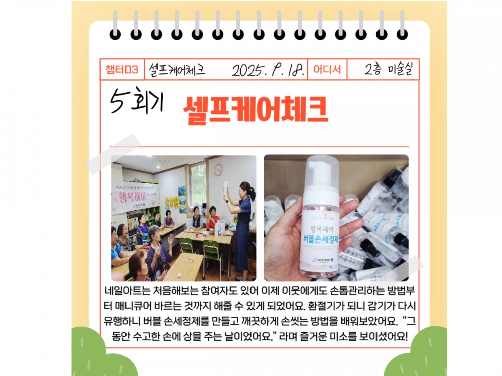 행복헤어 9월활동 페이지 정보 작성자 시설운영팀 작성일25-09-22 23:52 조회701회 댓글0건 관련링크 이전글 다음글 목록 본문 #단풍 #추석 #명절* 이 디자인은 미리캔버스에서 작업되었습니다.(https://www.miricanvas.com) 댓글목록 등록된 댓글이 없습니다. 이전글 다음글 목록