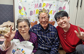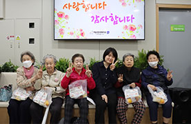 - 내용 : 식사 및 밑반찬 배달 이용 어르신 중 생신을 맞이하는 어르신에게 찾아가는 생신잔치를 통하여 정서 지지 도모